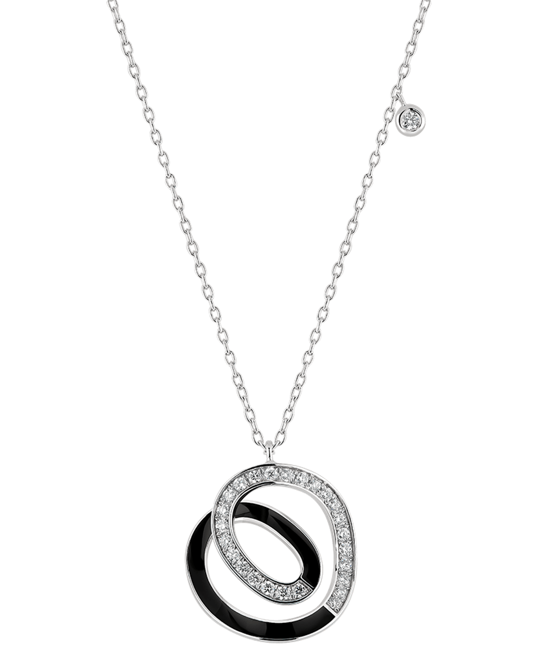 Molu Diamond 18K White Gold Black Enamel Spiral Necklace