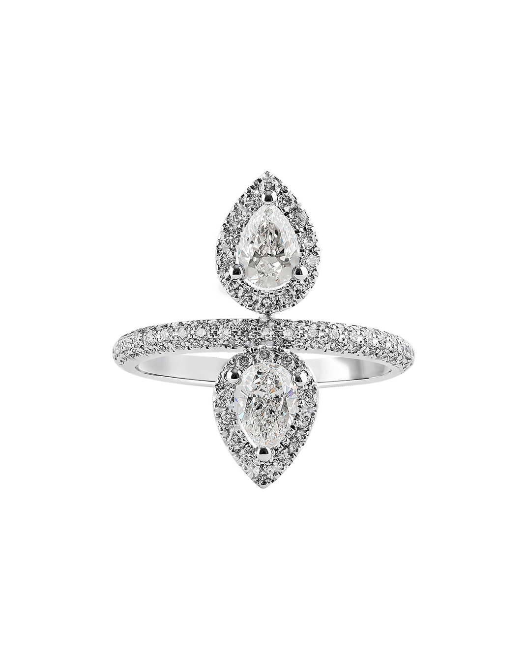 Molu Diamond 18K White Gold Double Drop Ring