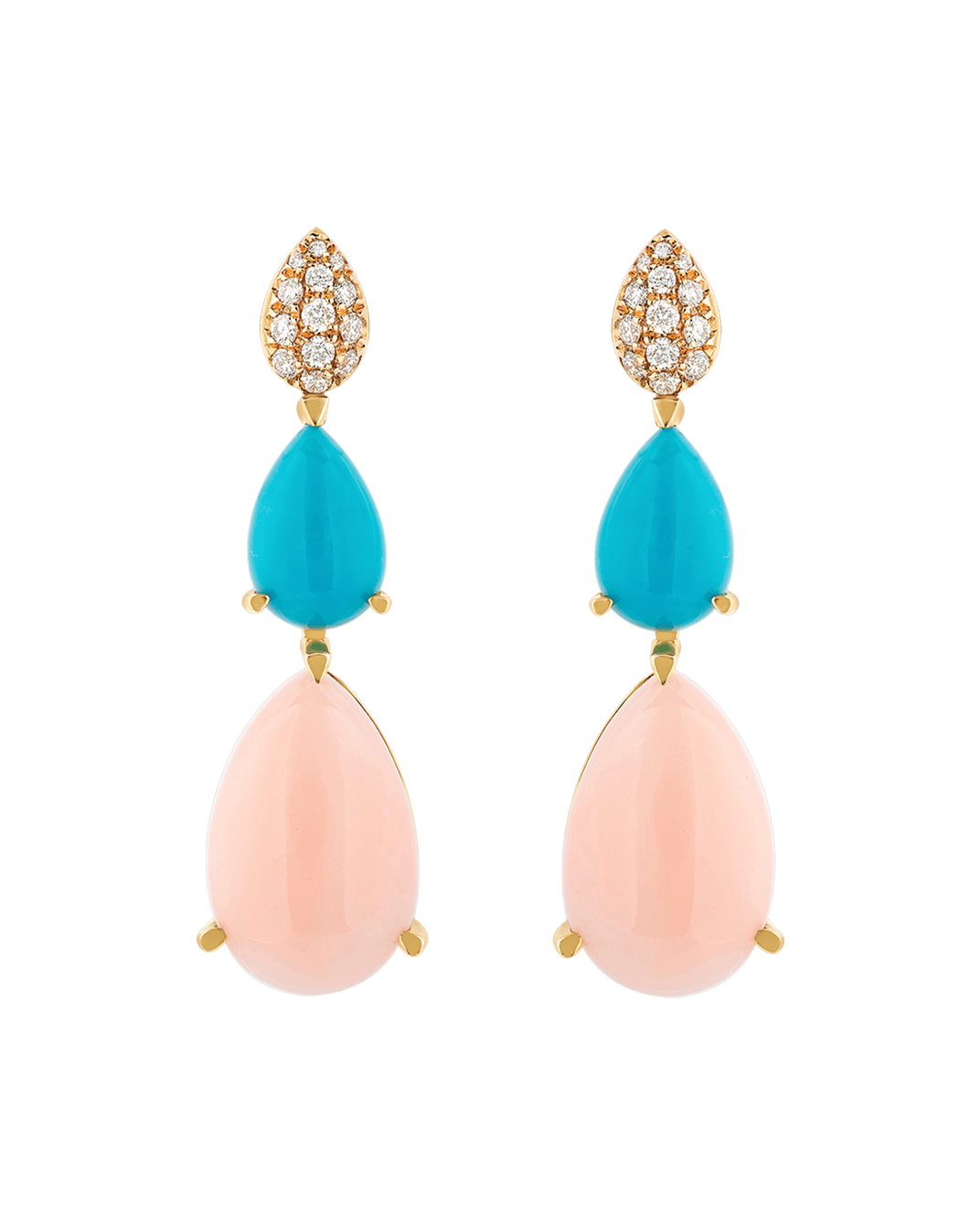 Tropica Colors Diamond 18K Rose Gold Drop Turquoise Pink Coral Dangle Earrings