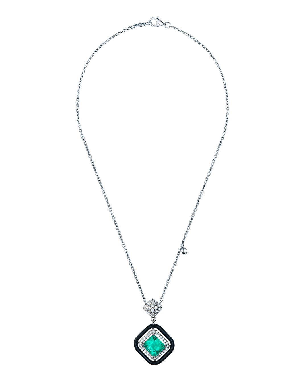 Molu Diamond Emerald 18K White Gold Necklace