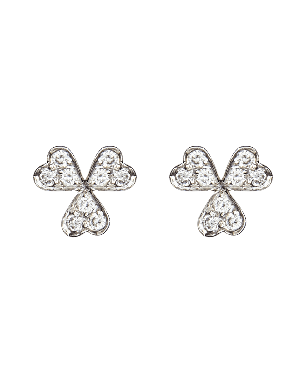 Molu Diamond 18K White Gold Lucky Clover Earrings