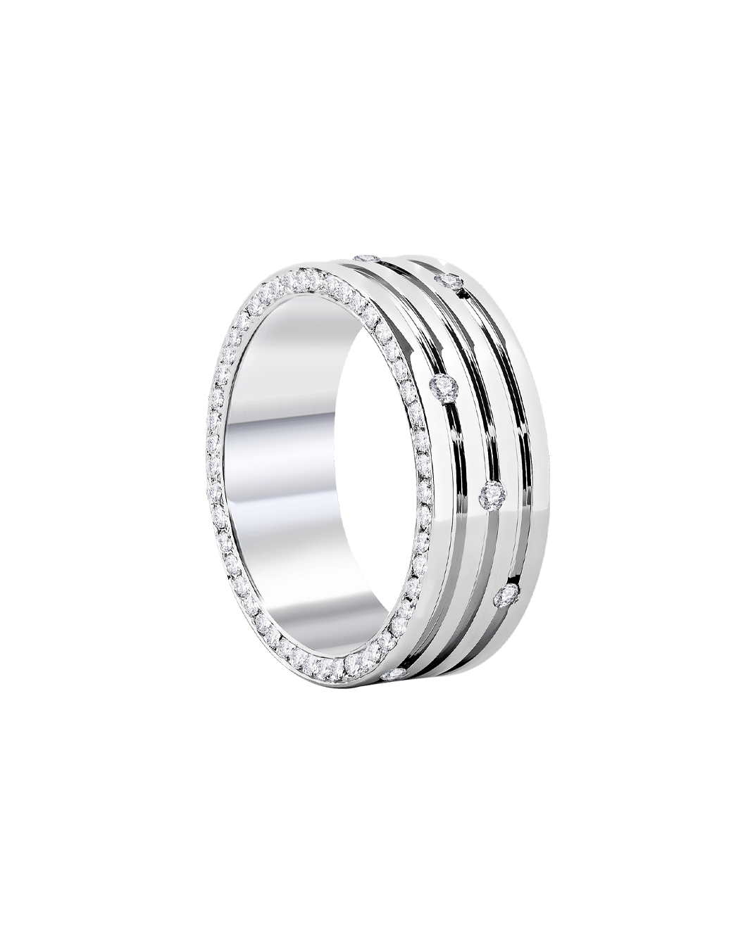 Molu Diamond 18K White Gold Three Channel Wedding Ring