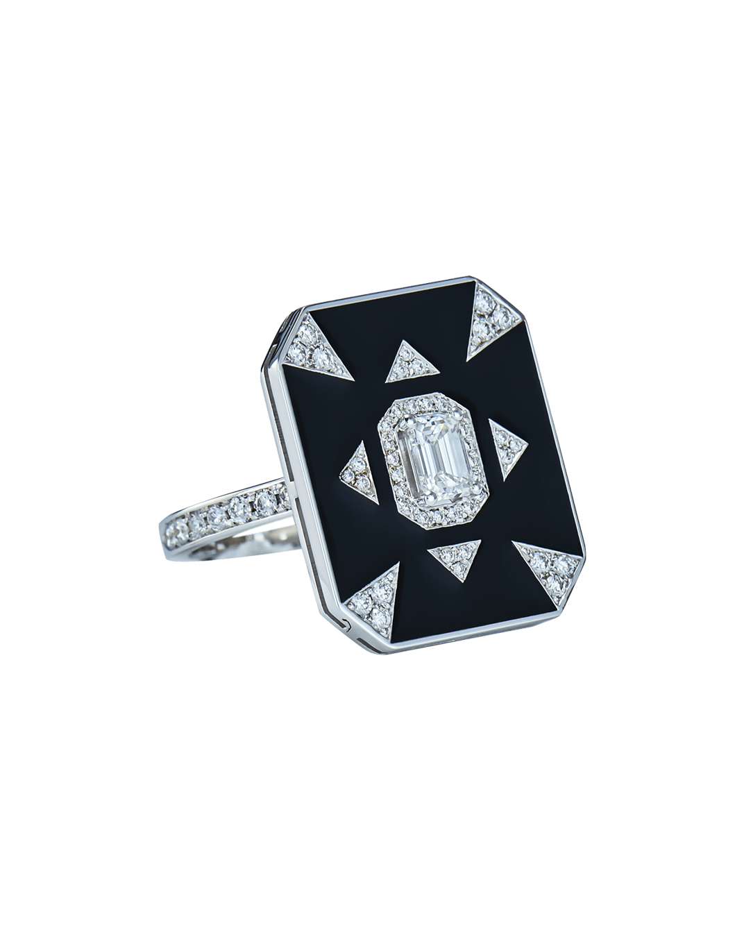 Molu Emerald Cut Diamond Black Enamel Solitaire Ring