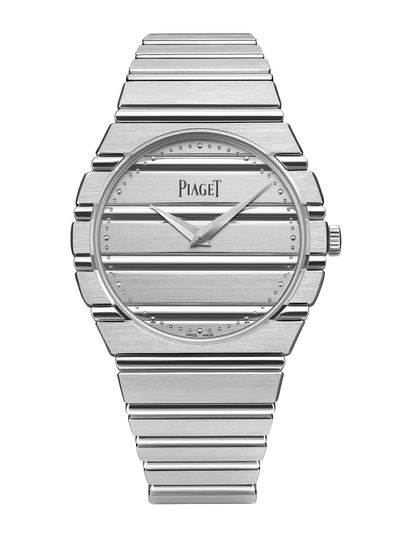 Piaget Polo 79 watch, 38mm. Rhodium finish 18K white gold case, dial and bracelet. Piaget signature alternation of gadroons and satin finished gold elements. Full integration of the bracelet into the case. Sapphire crystal case back. 1200P1 Manufacture automatic movement with a grey coated 22K gold micro-rotor.