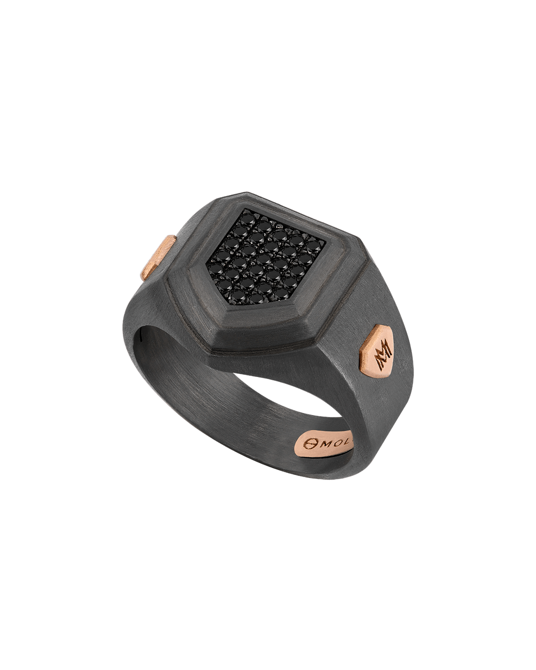 Molu Legend Siyah Pırlantalı 18 Ayar Pembe Altın & 925 Gümüş Yüzük