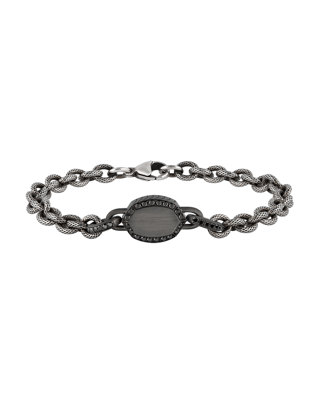 Molu Legend Siyah Pırlantalı 925 Gümüş Zincir Bilezik