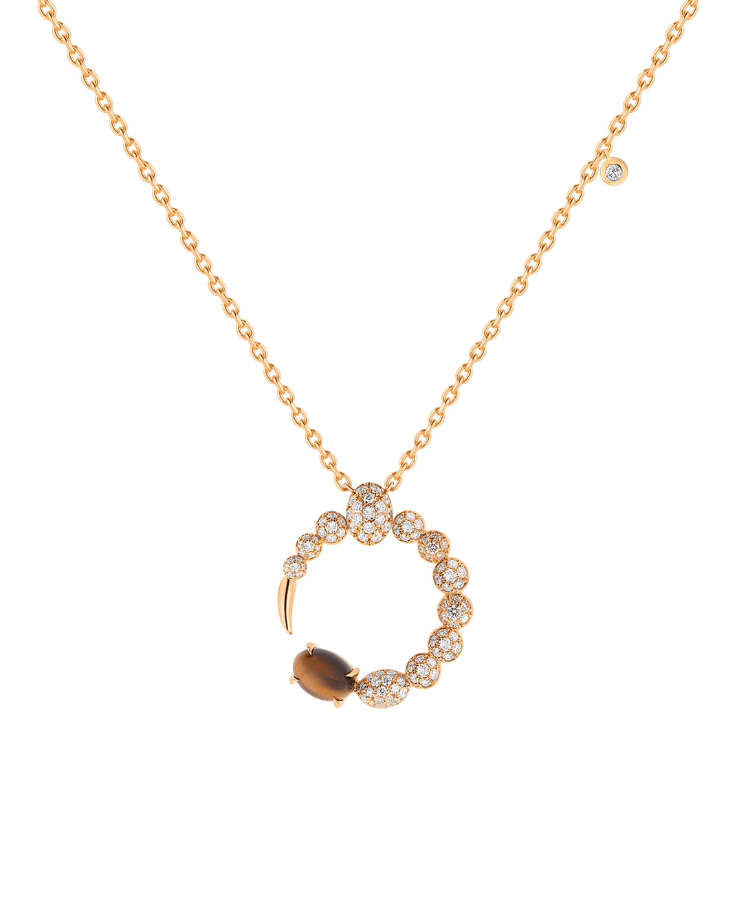 Tropica Pırlantalı 18 Ayar Pembe Altın Kaplan Gözü Taşlı Kolye