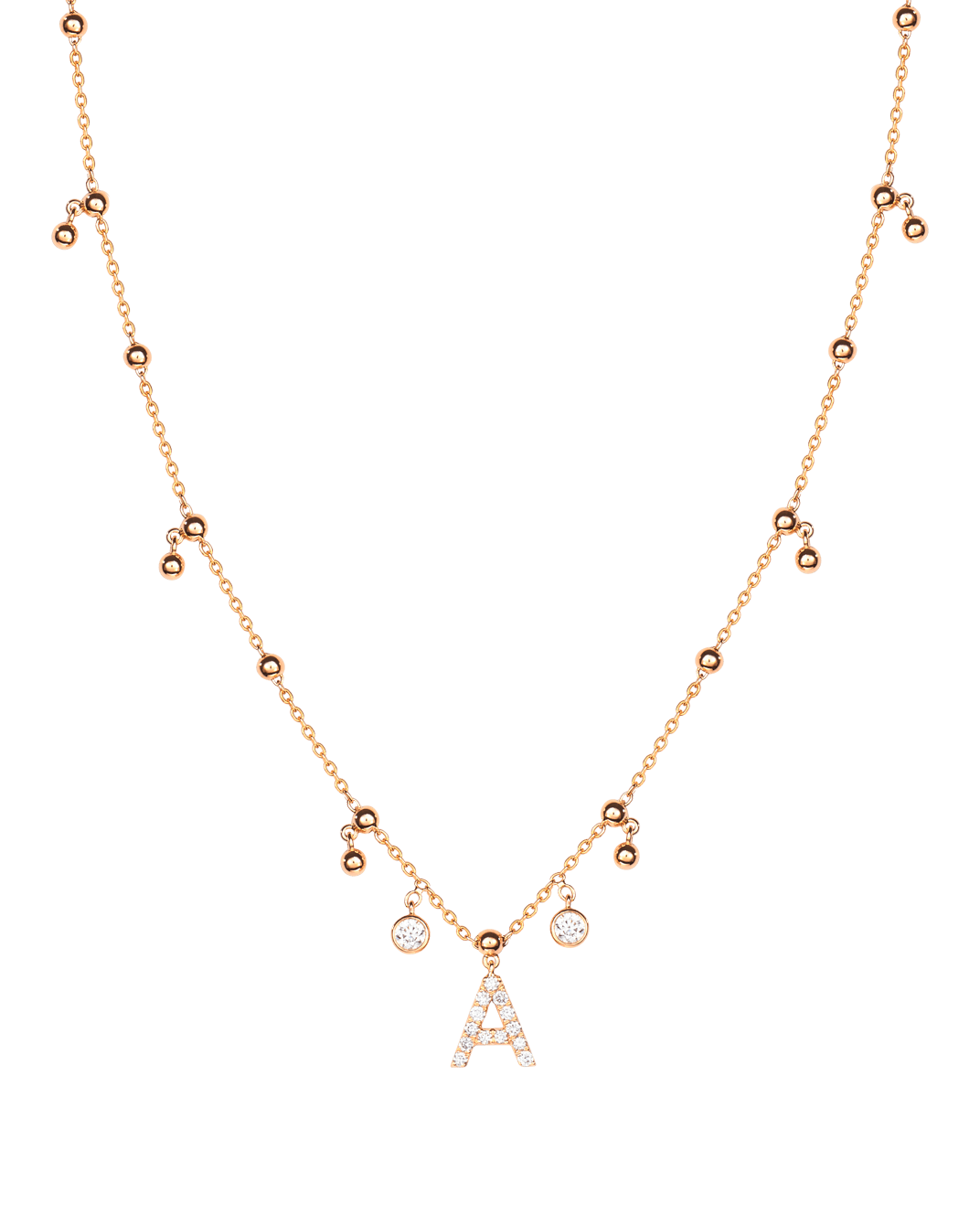 Molu Beyaz Pırlantalı 18 Ayar Pembe Altın Top Zincirli A Harfli Kolye