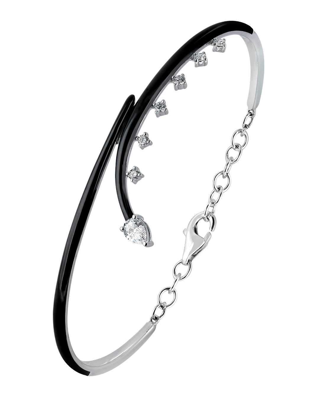Molu Damla Pırlantalı 18 Ayar Beyaz Altın Siyah Mineli Kelepçe Bilezik
