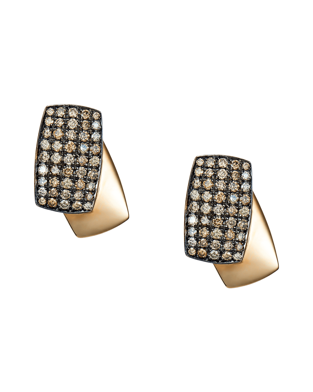 Molu Kahve Pırlantalı 18 Ayar Pembe Altın Dikdörtgen Pave Küpe