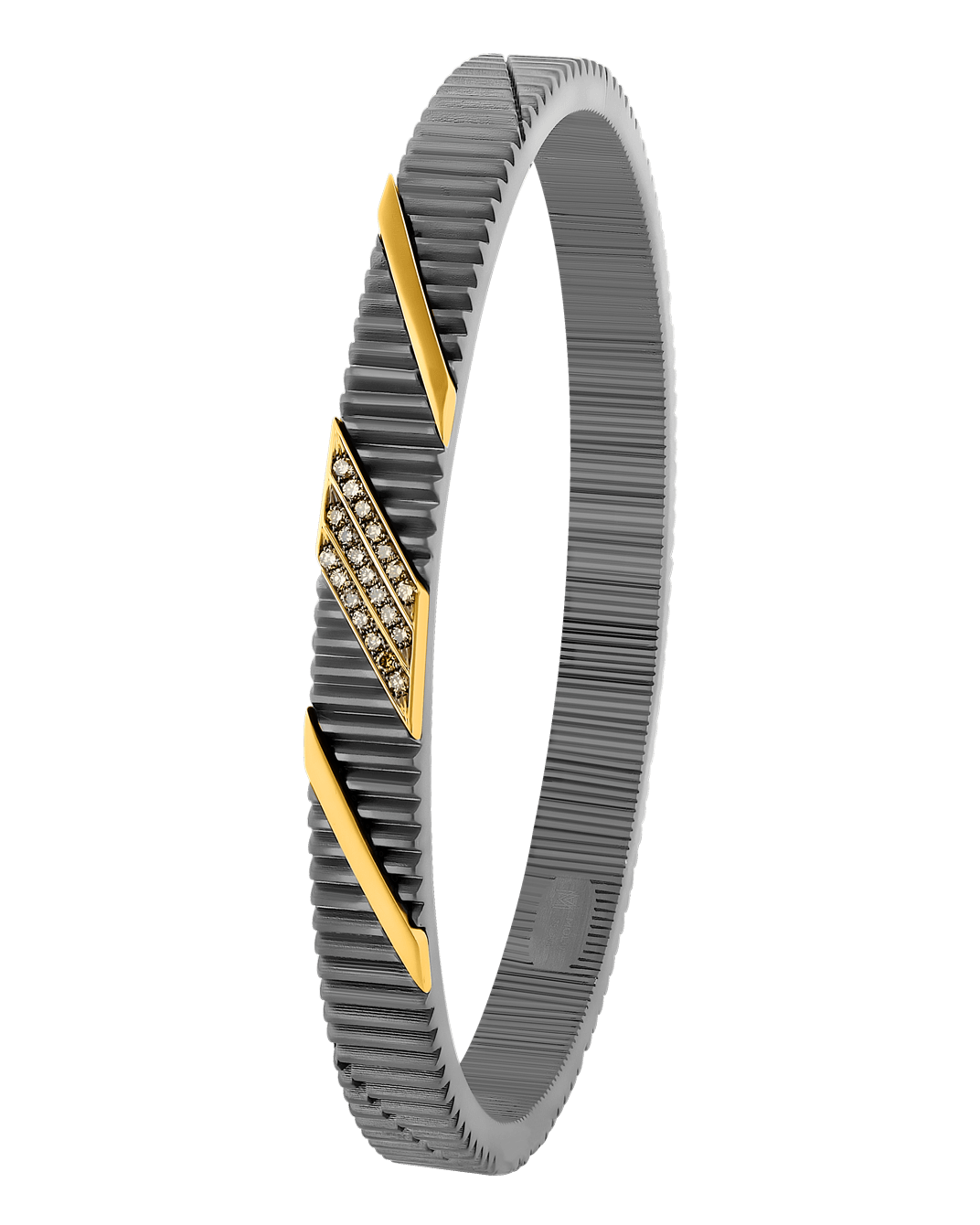 Molu Kahve Pırlantalı Gümüş Bilezik: 18 Ayar Pembe Altın ve 925 Ayar Gümüş olarak tasarlanan bilezik, kahverengi pırlantanın şık dokunuşu ile modern bir şehir stiline bürünüyor.