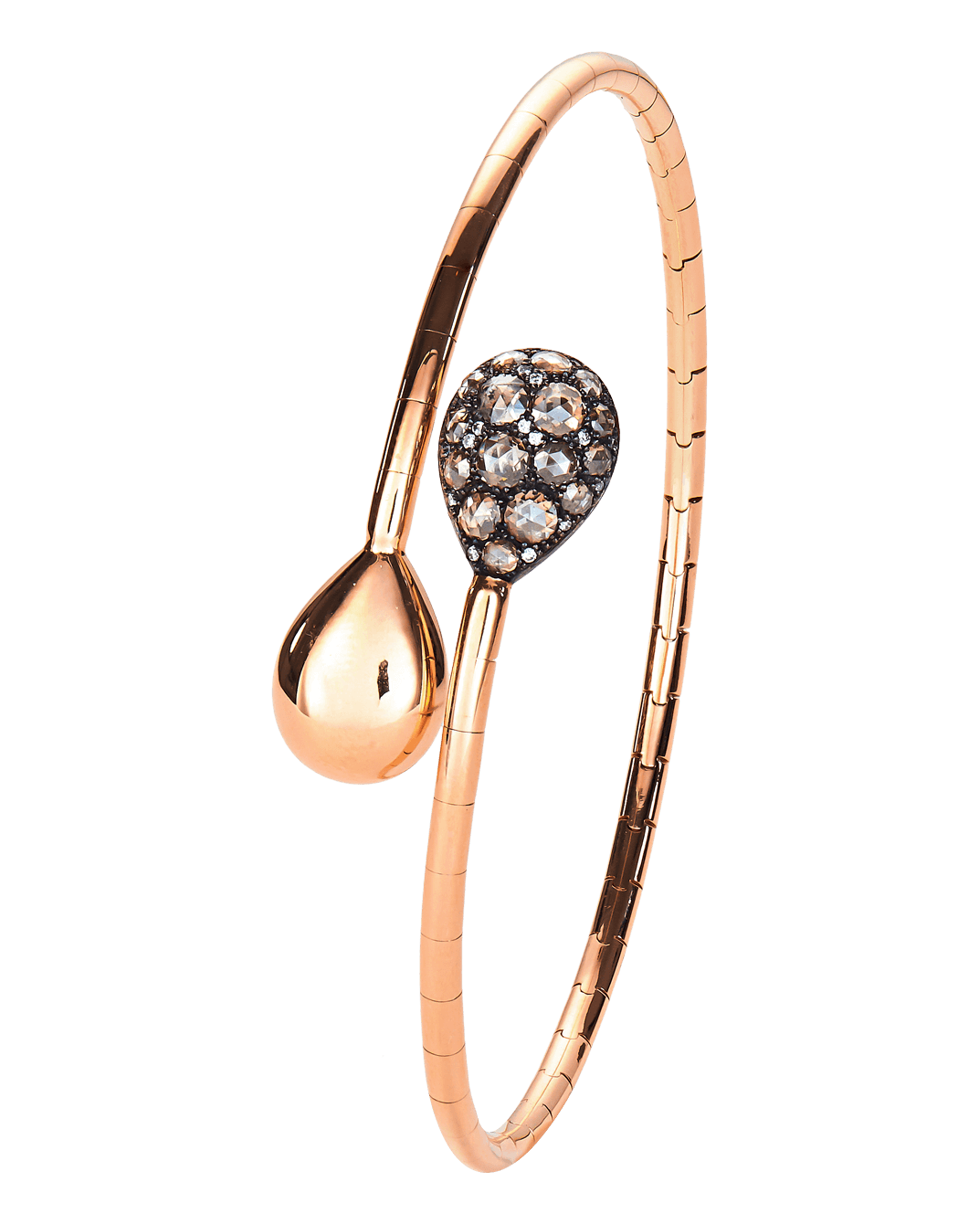 Molu Kahve Pırlantalı 18Ayar Pembe Altın Kelepçe Bilezik