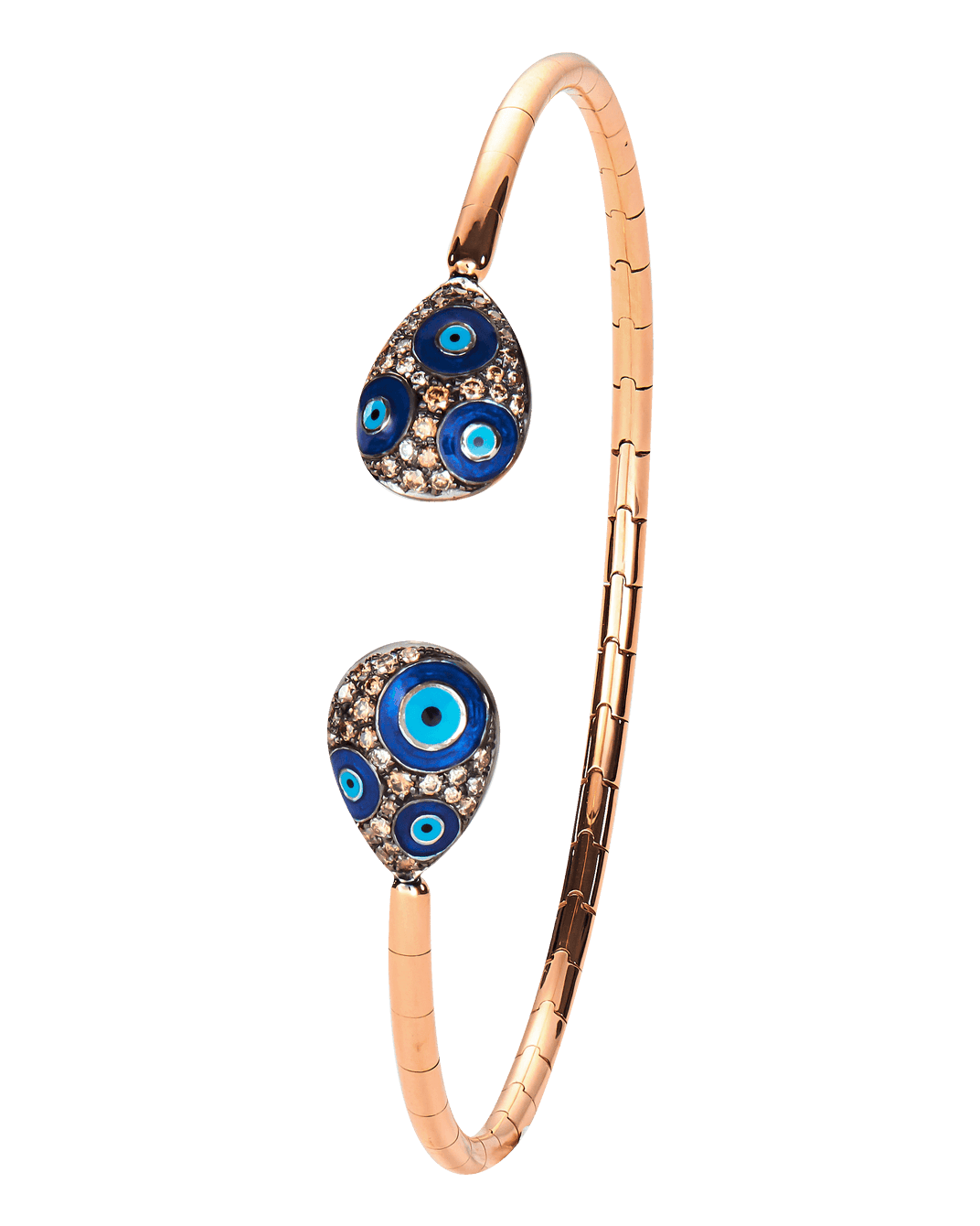 Molu Kahve Pırlantalı Mineli 18 Ayar Pembe Altın Gözlü Kelepçe Bilezik