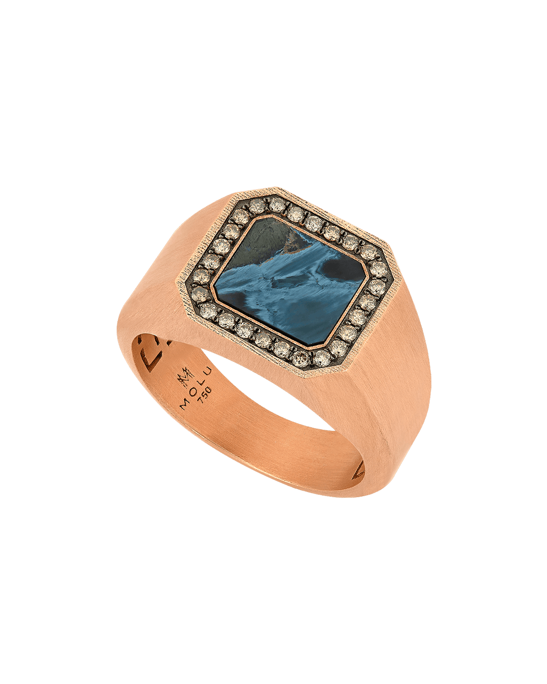 Molu Kahve Pırlantalı Pietersite Taşlı 18 Ayar Pembe Altın Yüzük