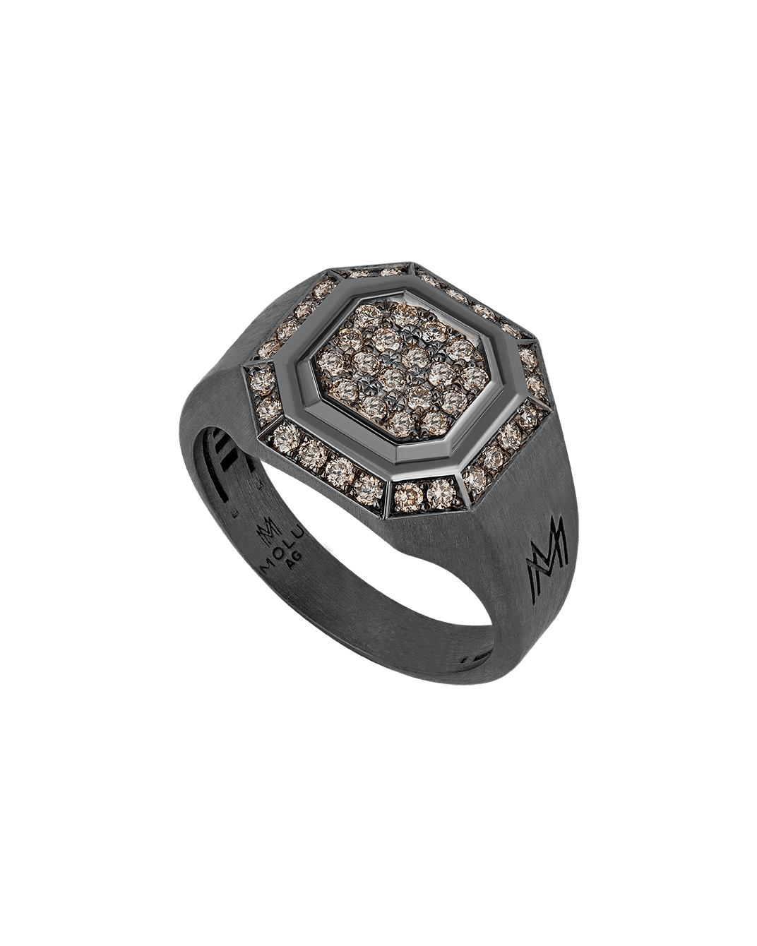 Molu Kahve Pırlantalı Sekizgen Gümüş Yüzük