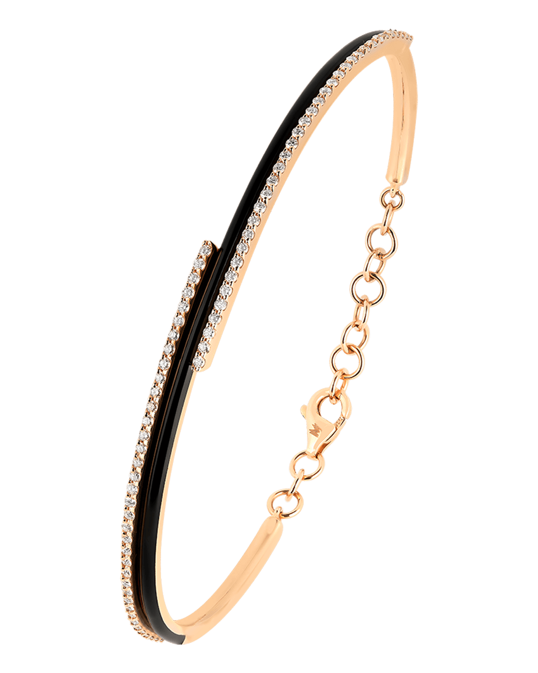 Molu Pırlantalı 18 Ayar Pembe Altın Siyah Mineli Kelepçe Bilezik