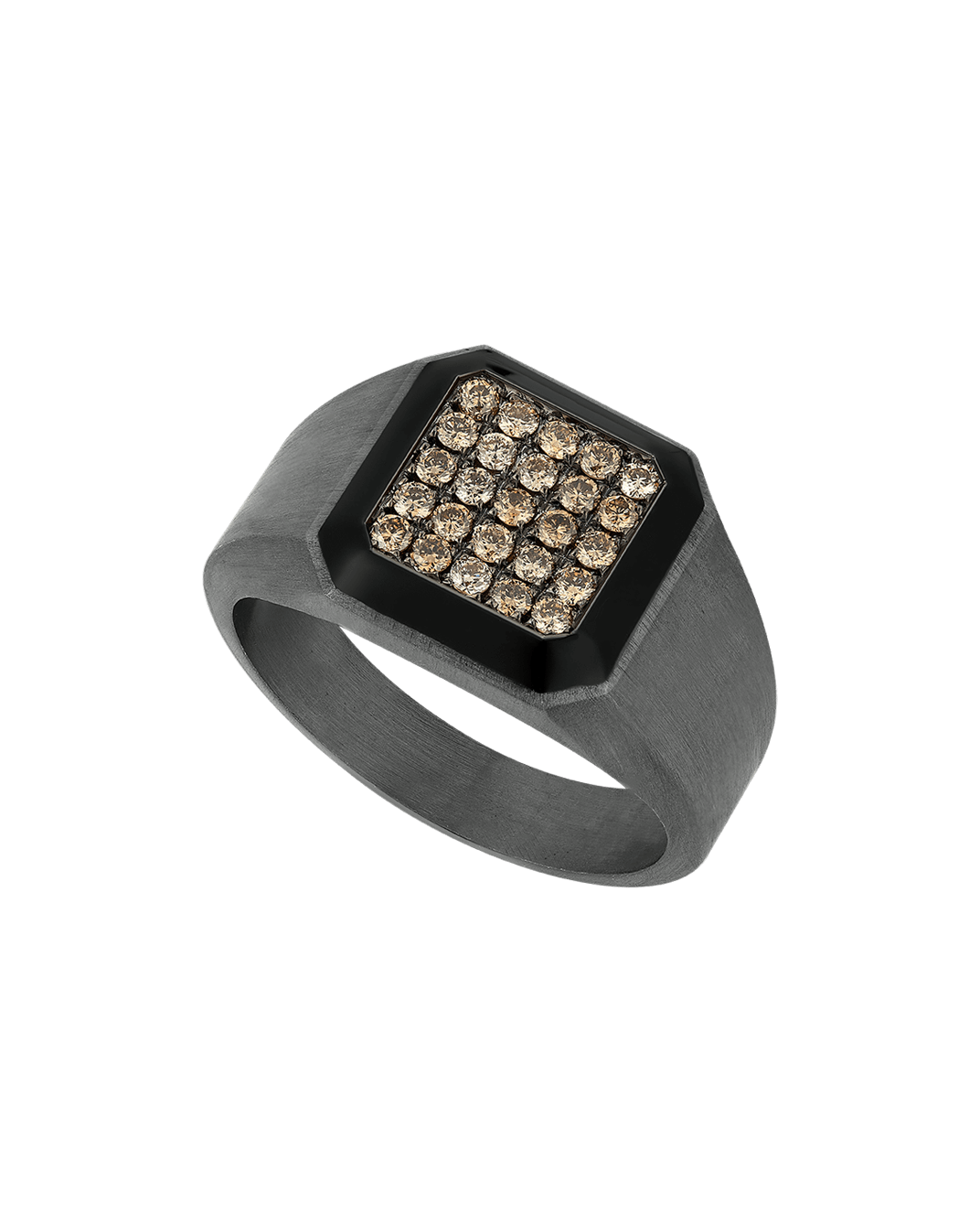 Molu Kahve Pırlantalı Siyah Mineli Sekizgen Gümüş Yüzük