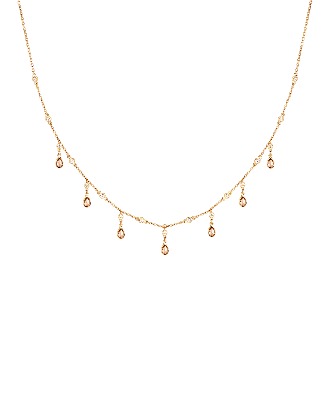 Molu Kahve Pırlantalı 18 Ayar Pembe Altın Taşlı Zincir Kolye