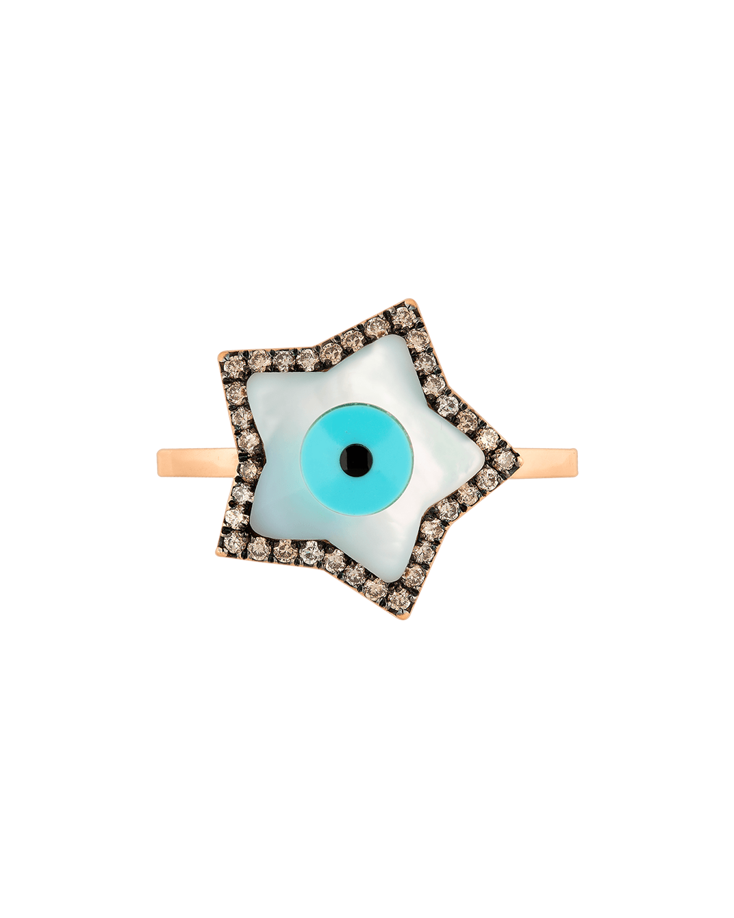 Molu Kahve Pırlantalı 18 Ayar Pembe Altın Yıldız Gözlü Yüzük