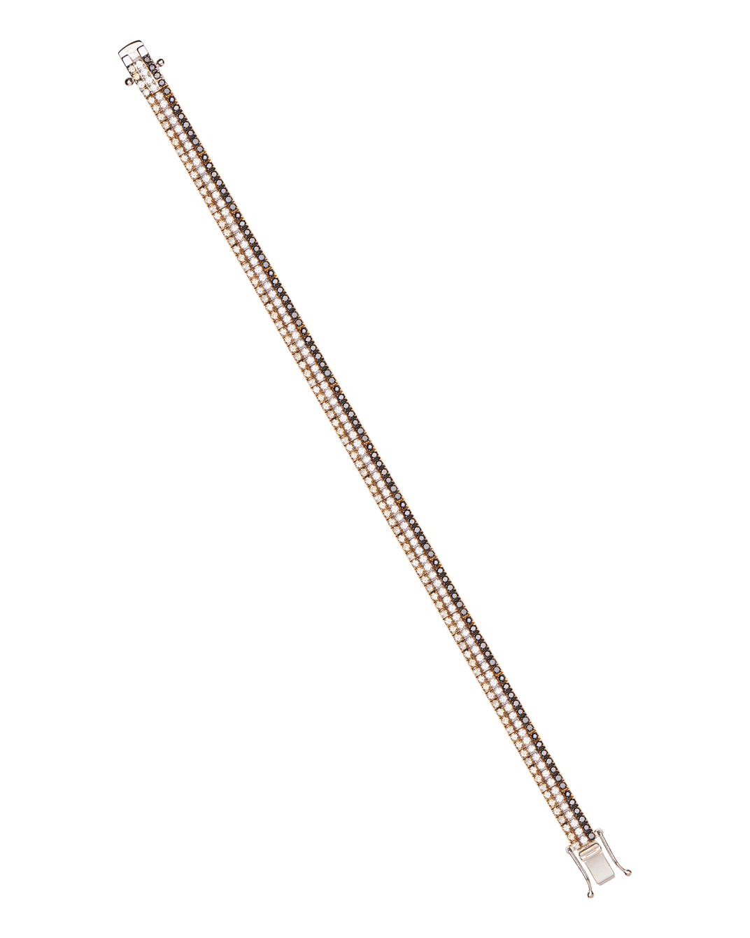 Molu Kahve Siyah Beyaz Pırlantalı 18 Ayar Pembe Altın 3 Sıralı Su Bilezik
