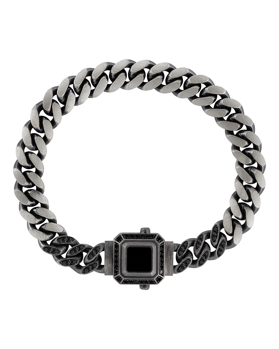 Legend Kahve Pırlantalı 925 Gümüş Oniksli Zincir Bilezik