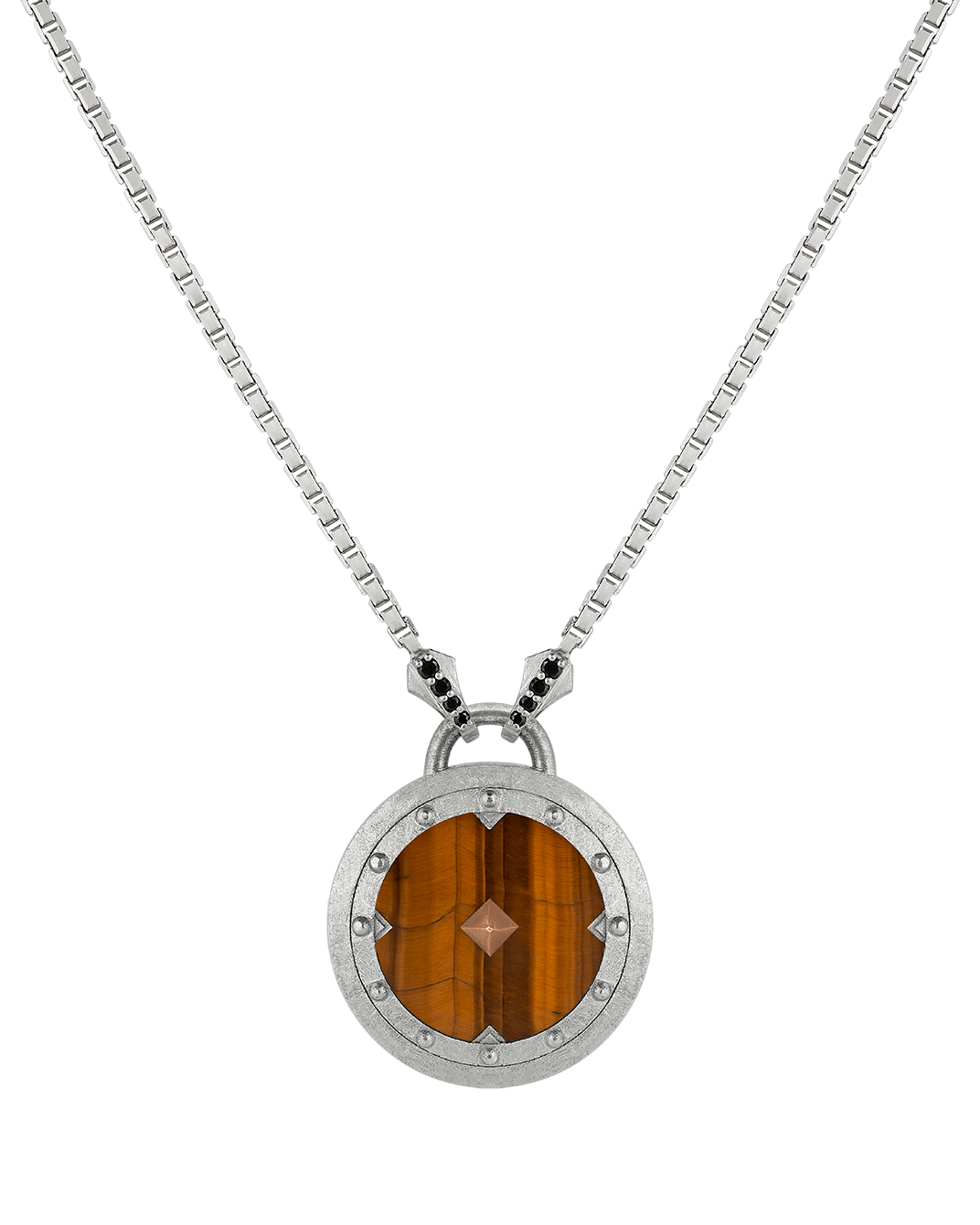Molu Legend Siyah Pırlantalı Kaplan Gözü Taşlı 925 Gümüş Kolye