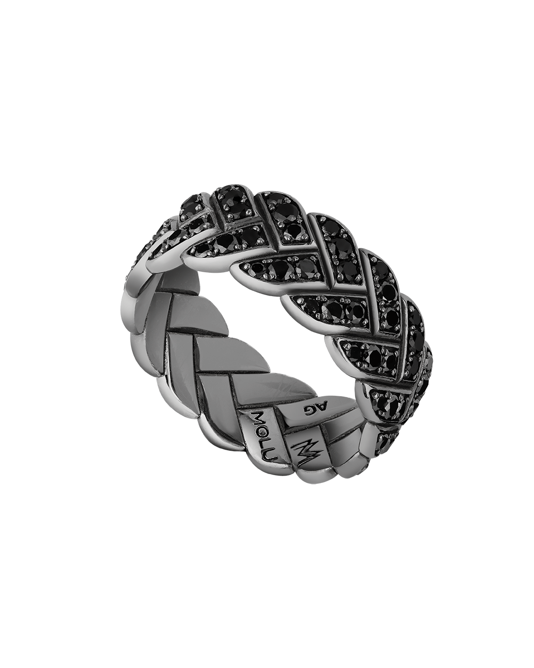Molu Siyah Pırlantalı Gümüş Yüzük