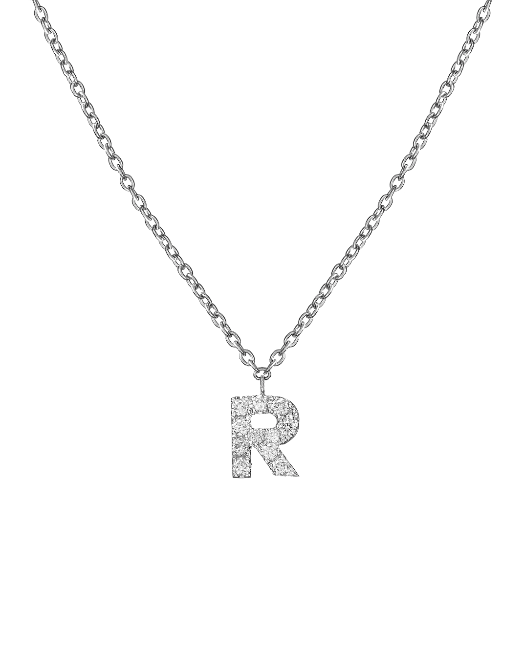 Molu Pırlantalı 18 Ayar Beyaz Altın R Harfli Kolye