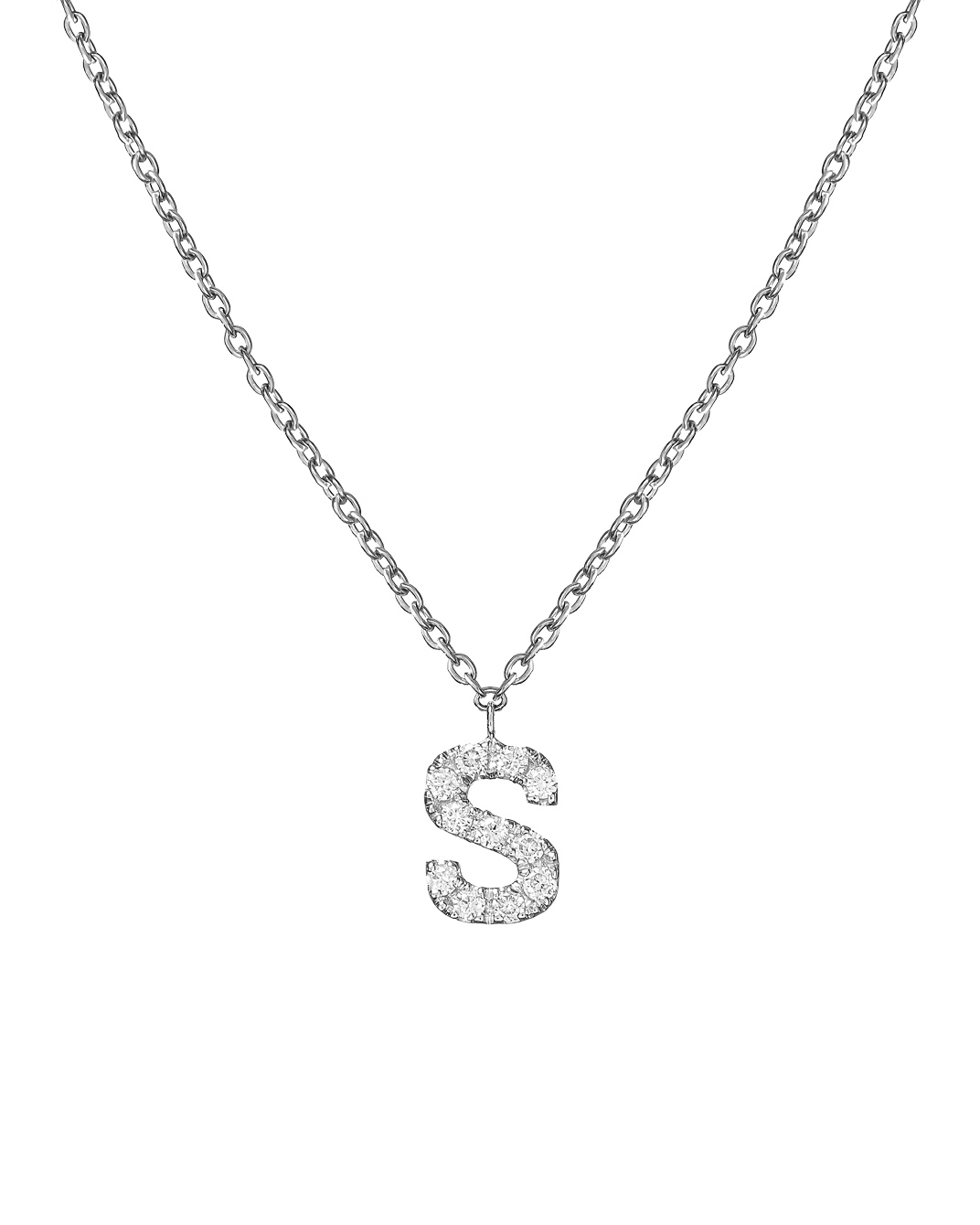 Molu Pırlantalı 18 Ayar Beyaz Altın S Harfli Kolye
