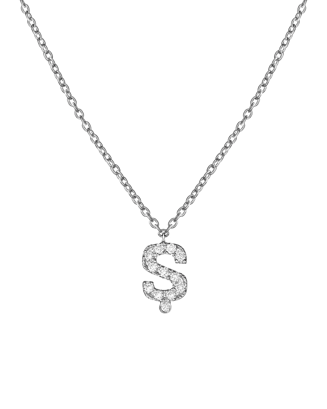 Molu Pırlantalı 18 Ayar Beyaz Altın Ş Harfli Kolye