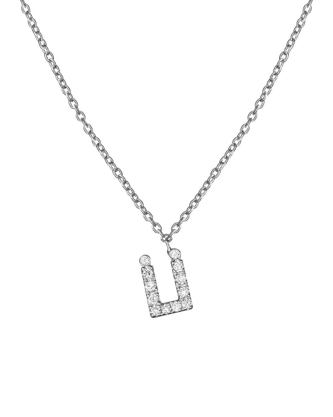 Molu Pırlantalı 18 Ayar Beyaz Altın Ü Harfli Kolye
