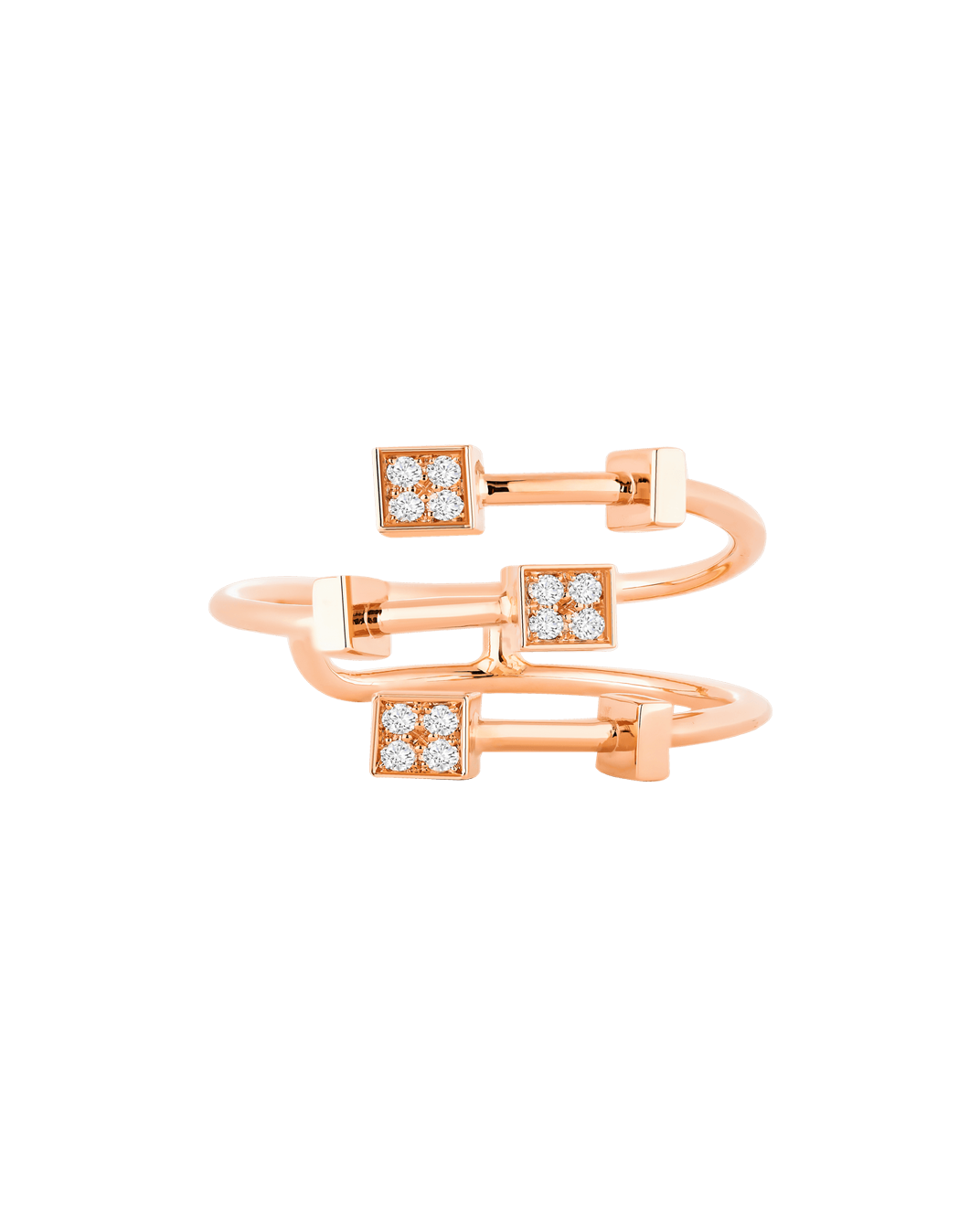 Molu Pırlantalı 18 Ayar Pembe Altın 3 Sıralı Küçük Küp Yüzük