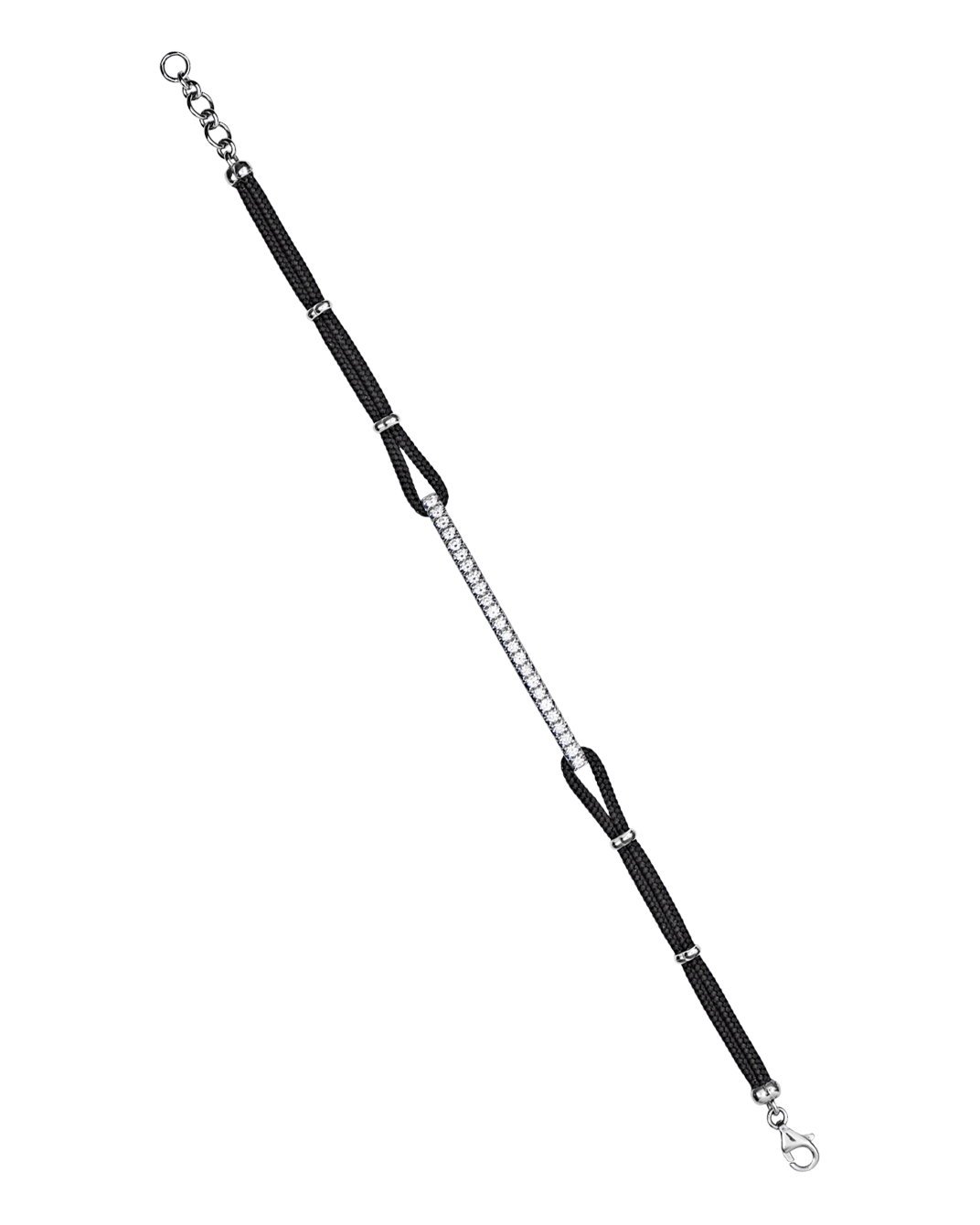 Molu Pırlantalı İpek Kordonlu Çubuk Bilezik