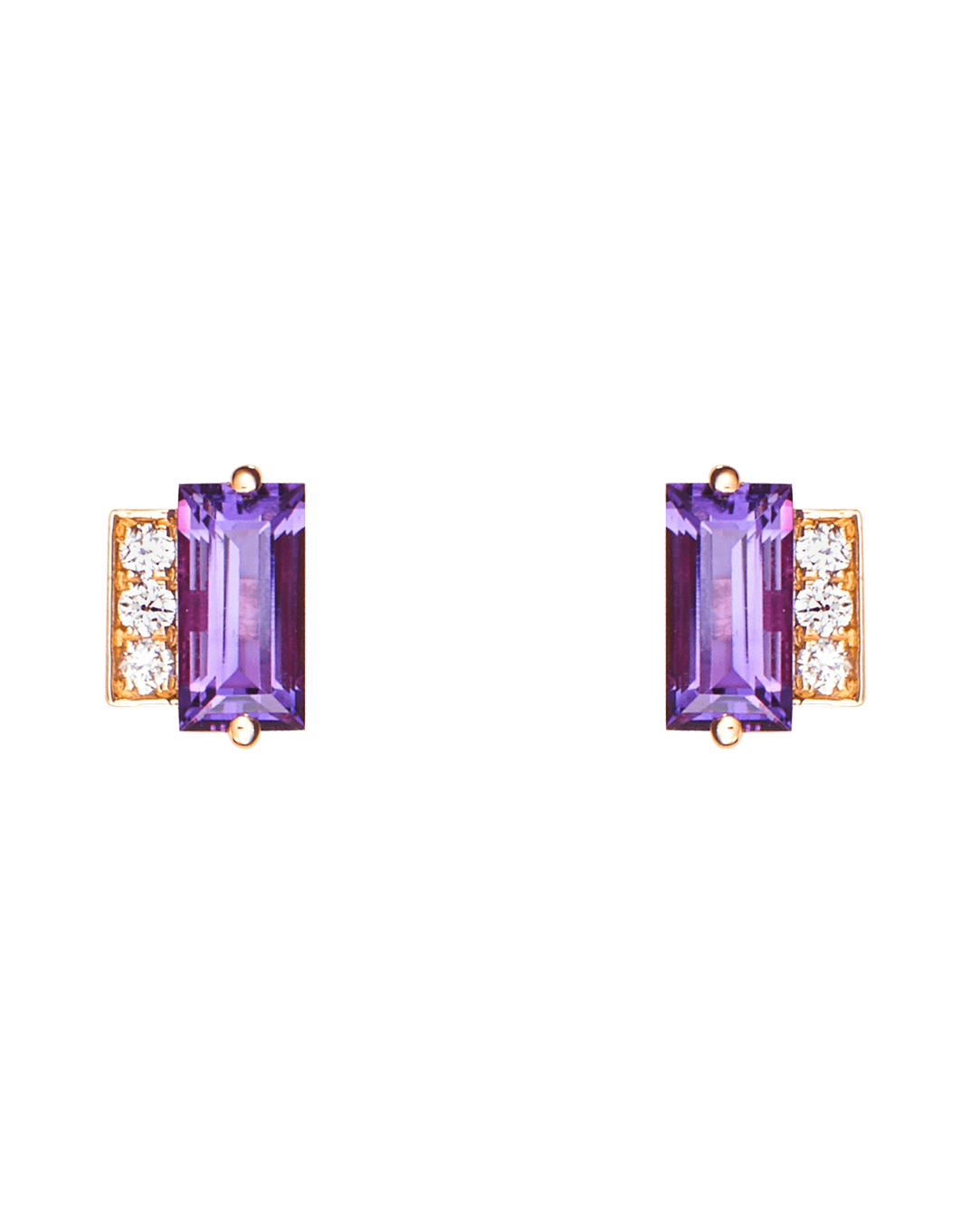 Molu Pırlantalı Ametistli 18 Ayar Pembe Altın Küpe