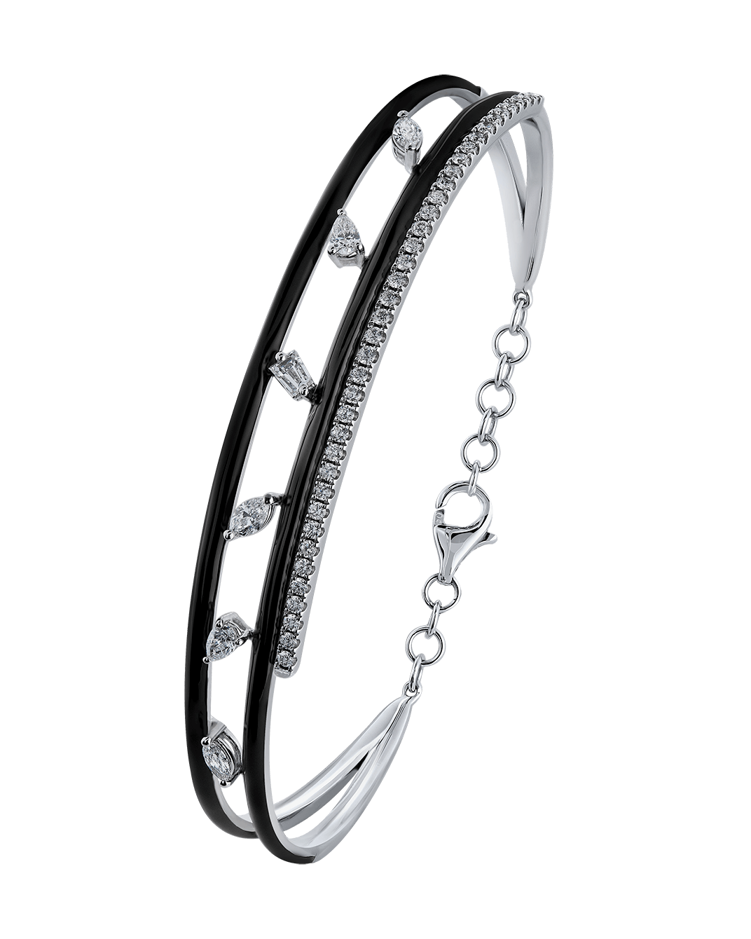 Molu Pırlantalı Çift Sıra Siyah Mineli 18 Ayar Beyaz Altın Kelepçe Bilezik