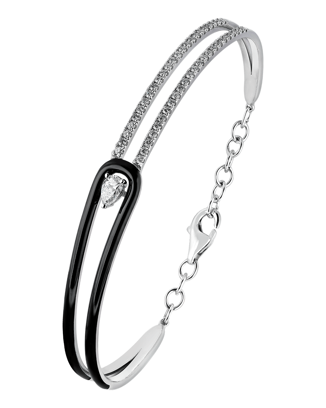 Molu Pırlantalı Çift Sıralı Siyah Mineli Kelepçe Bilezik