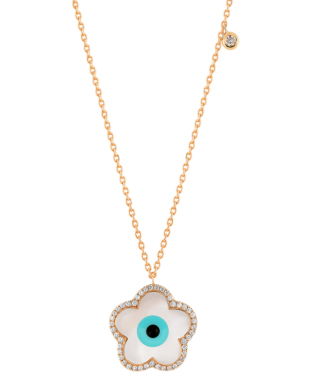 Molu Pırlantalı 18 Ayar Pembe Altın Gözlü Çiçek Kolye