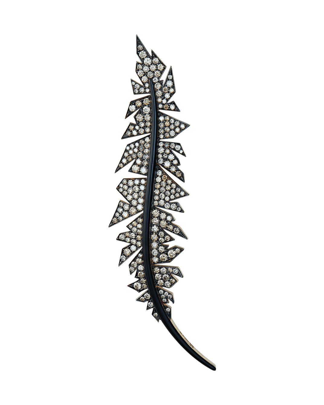 Molu Pırlantalı Kahve Siyah Mineli Pave Yaprak Broş: 18 Ayar Beyaz Altın olarak tasarlanan yaprak broş, siyah minenin zarafeti ve kahve pırlantalar eşliğinde iz bırakan bir mücevhere dönüşüyor.
