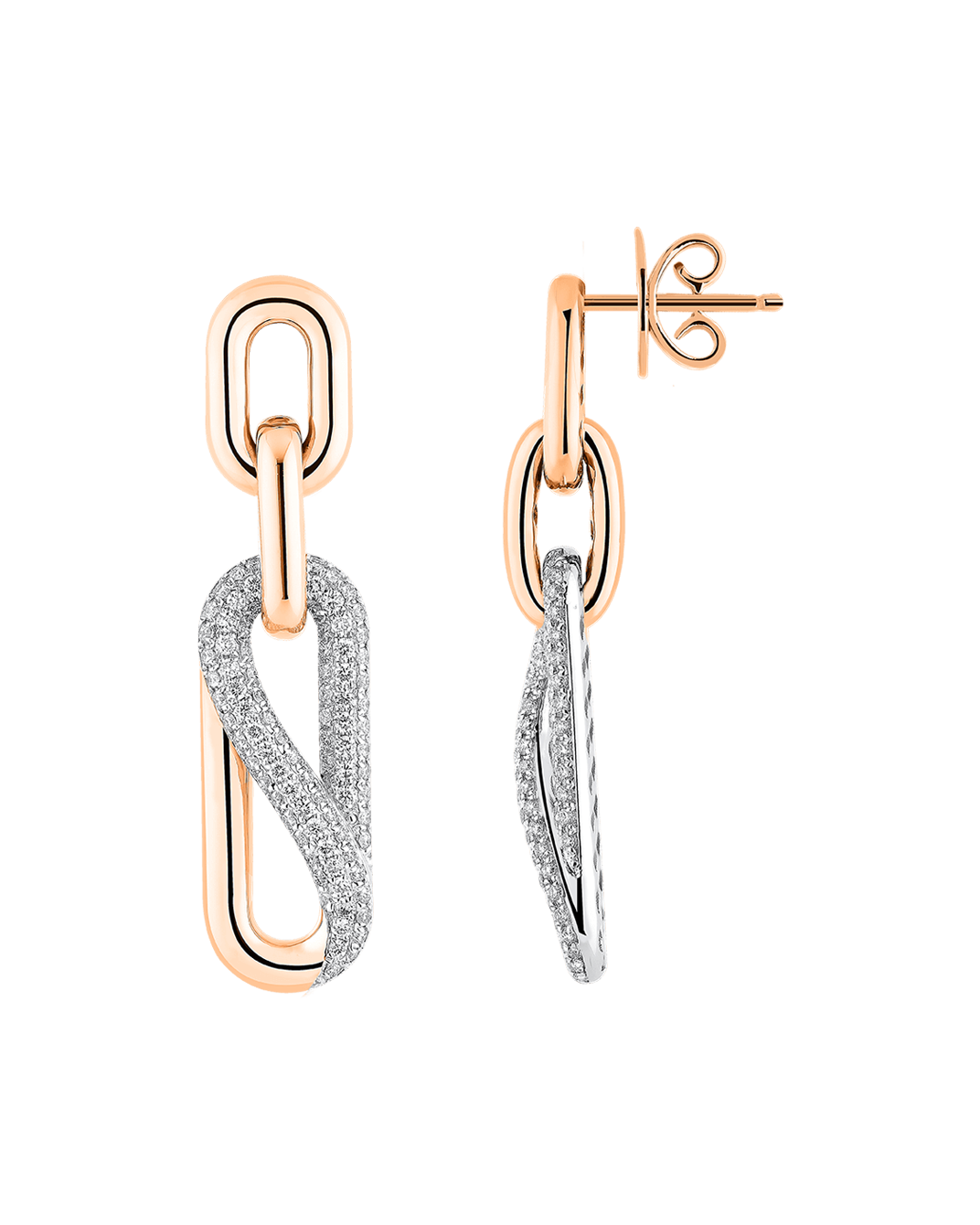 Molu Pırlantalı 18 Ayar Pembe Altın Kıvrımlı Pave Küpe