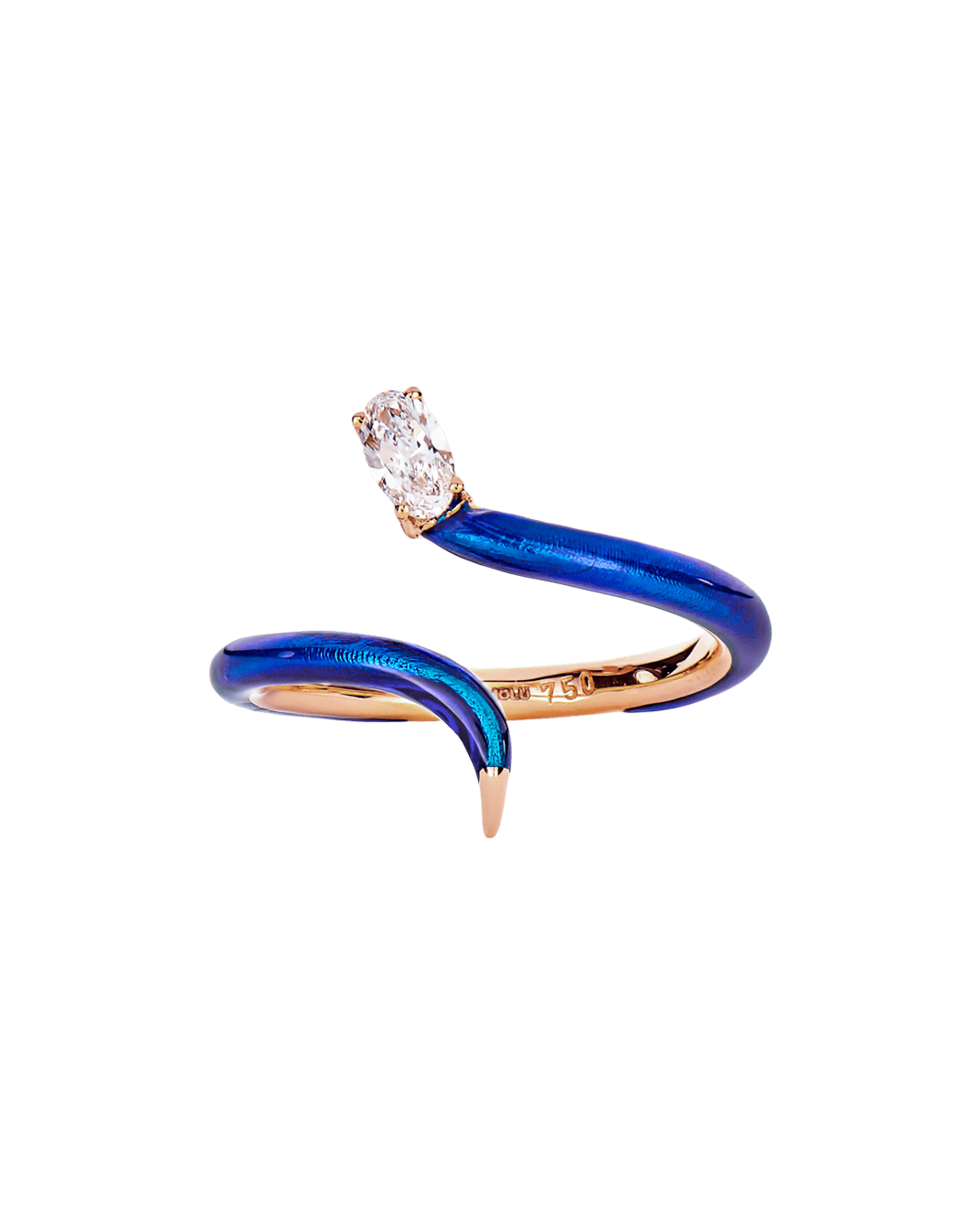 Molu Pırlantalı Mavi Mineli 18 Ayar Pembe Altın Yılan Yüzük