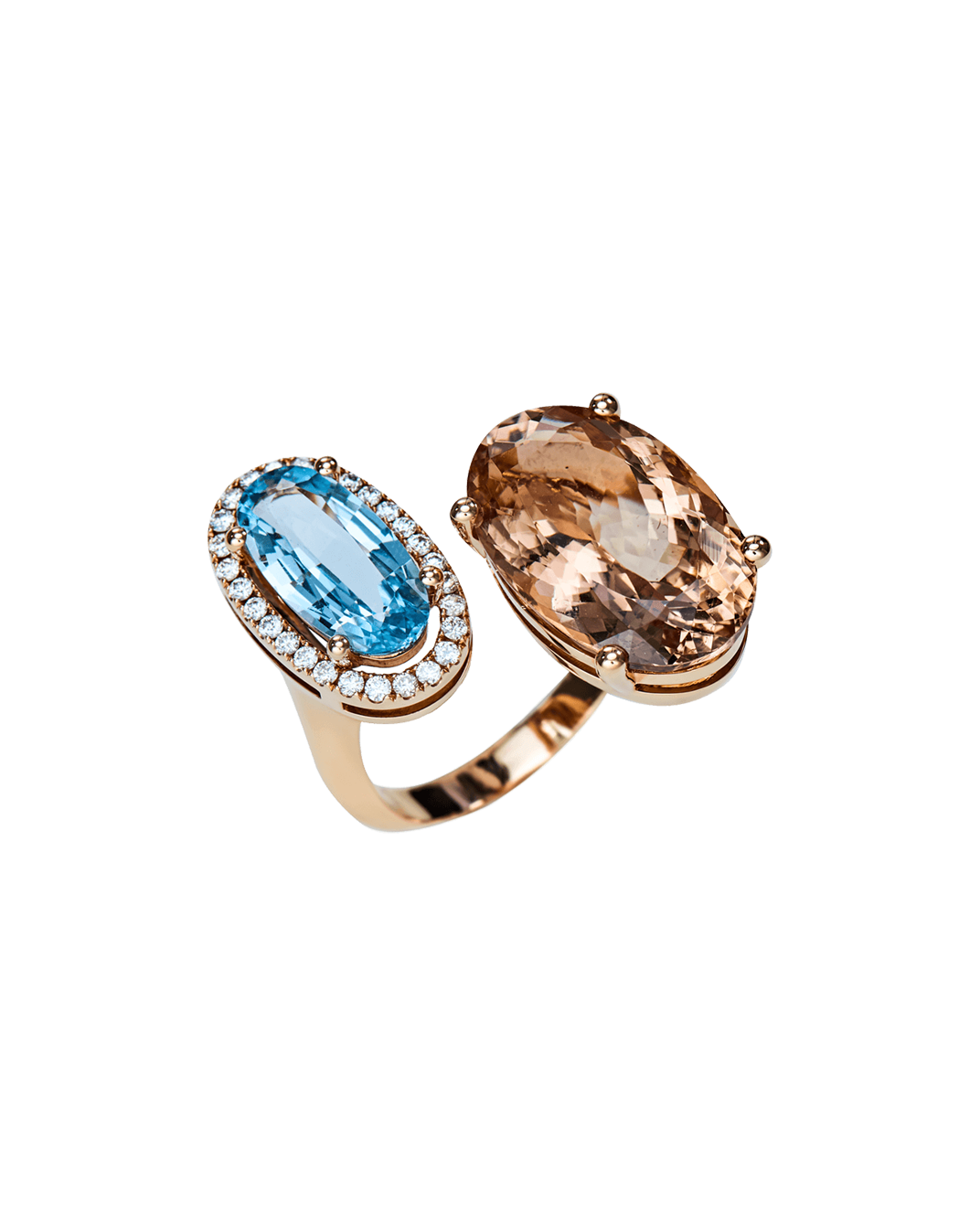 Molu Pırlantalı Morganit ve Akuamarin 18 Ayar Pembe Altın Yüzük