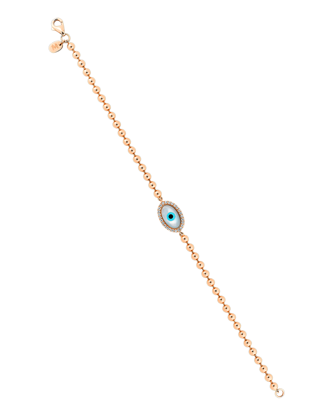 Molu Pırlantalı 14 Ayar Pembe Altın Oval Gözlü Top Zincirli Bilezik