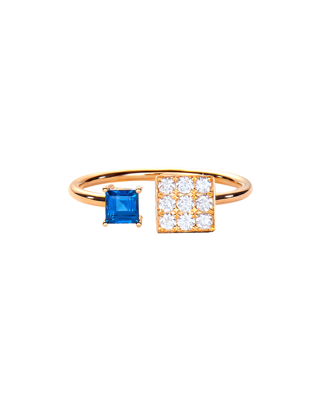 Molu Pırlantalı Safirli 18 Ayar Pembe Altın Yüzük
