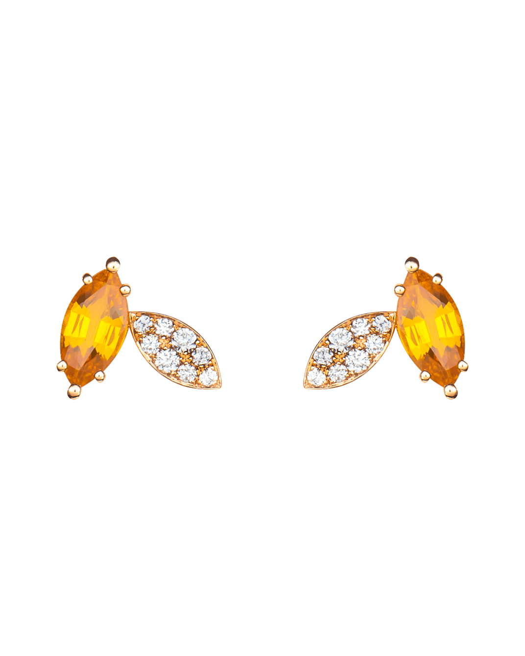 Molu Pırlantalı Sarı Safirli 18 Ayar Pembe Altın Pave Küpe