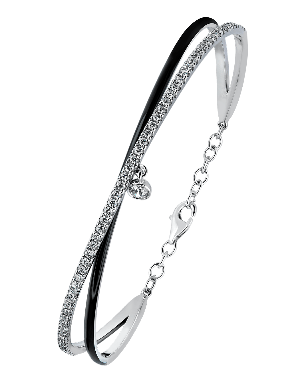 Molu Pırlantalı 18 Ayar Beyaz Altın Siyah Mineli Çapraz Kelepçe Bilezik