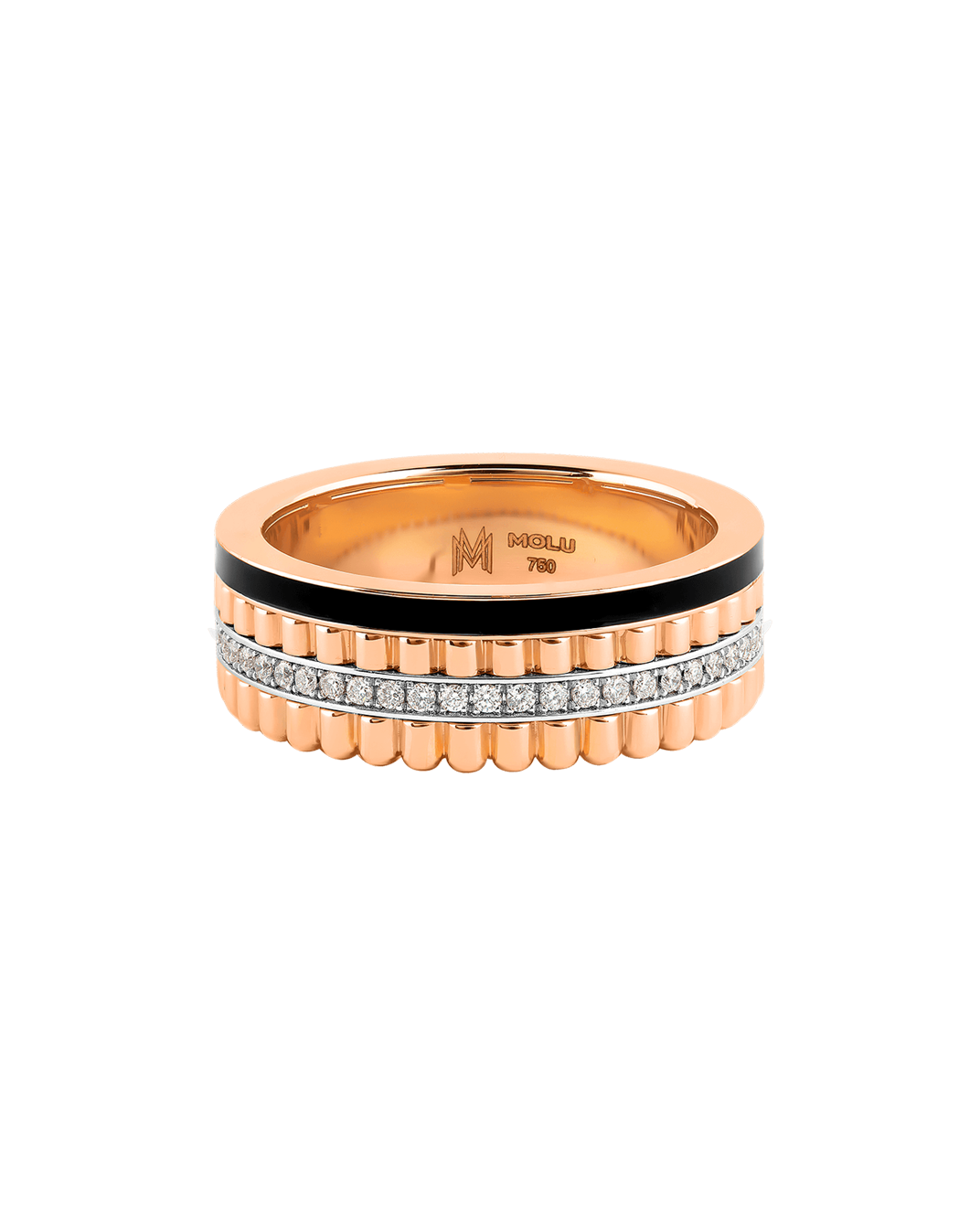 Molu Pırlantalı 18 Ayar Pembe Altın Siyah Mineli Kanallı Yüzük