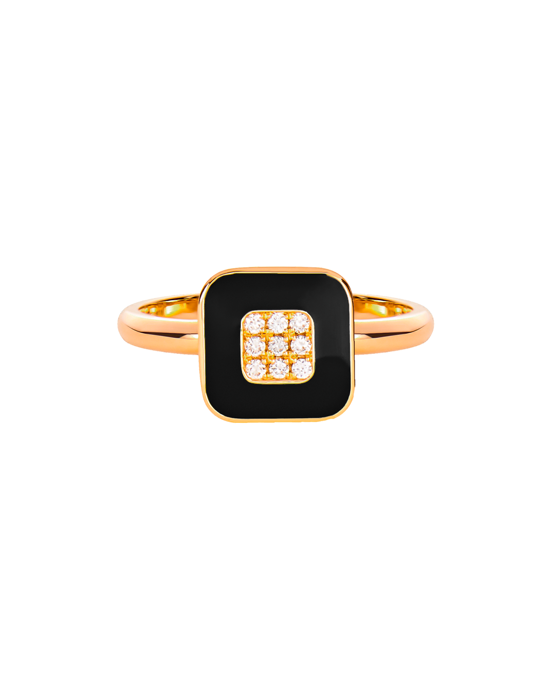 Molu Pırlantalı Siyah Mineli Kare Pave Yüzük: 18 Ayar Pembe Altın olarak tasarlanan kare yüzük, Molu pırlantaları ve siyah mine taşının uyumu ile stilinize zarif ışıltıları getiriyor.