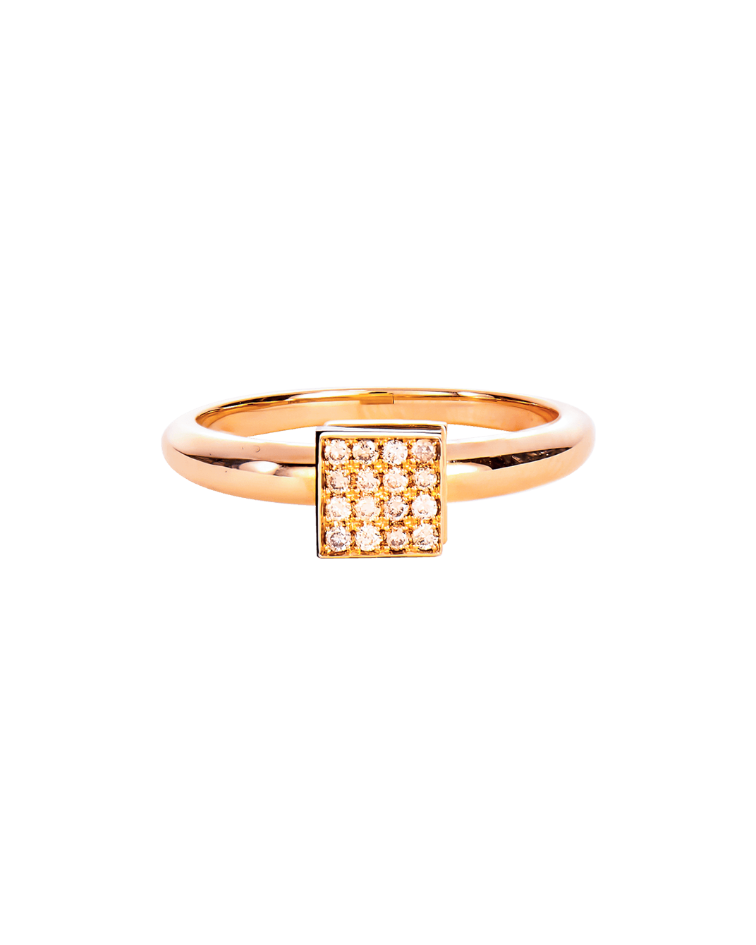Molu Pırlantalı Siyah Mineli Kare Yüzük: 18 Ayar Pembe Altın olarak tasarlanan yüzük, kare detayını süsleyen siyah mine ve Molu pırlantaları ile günün her anında tarzınıza gizemi ve ışıltıyı getiriyor.