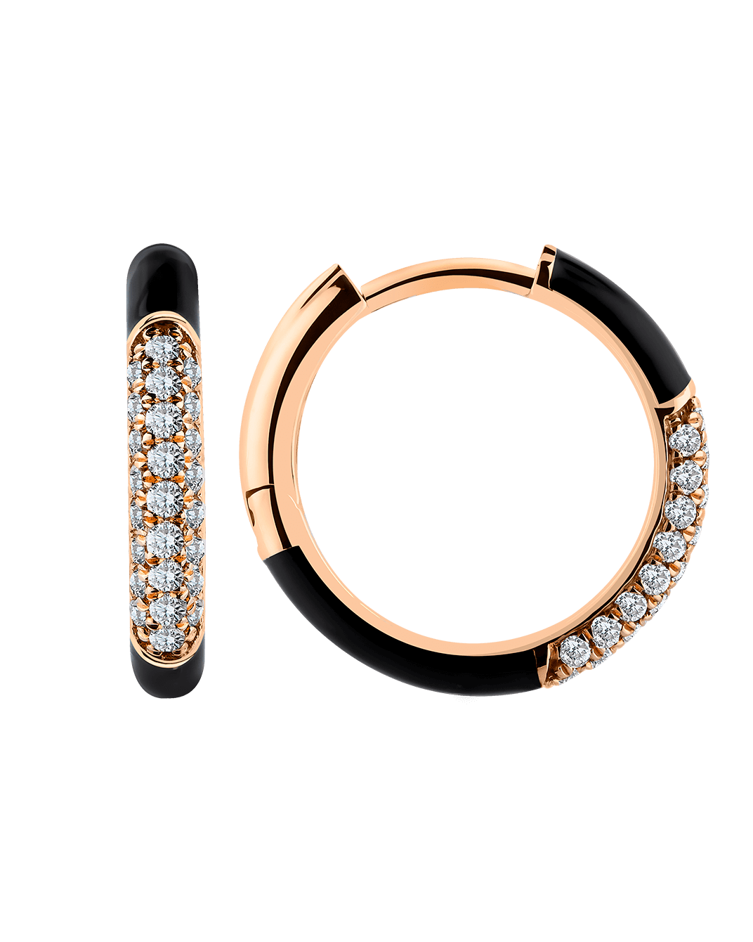 Molu Pırlantalı Siyah Mineli 18 Ayar Pembe Altın Küçük Halka Küpe