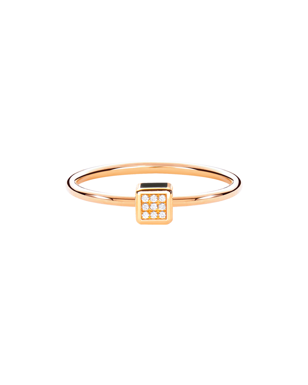Molu Pırlantalı Siyah Mineli Küp Yüzük: 18 Ayar Pembe Altın olarak tasarlanan yüzük, küp detayını süsleyen siyah mine ve Molu pırlantaları ile günün her anında tarzınıza gizemi ve ışıltıyı getiriyor.